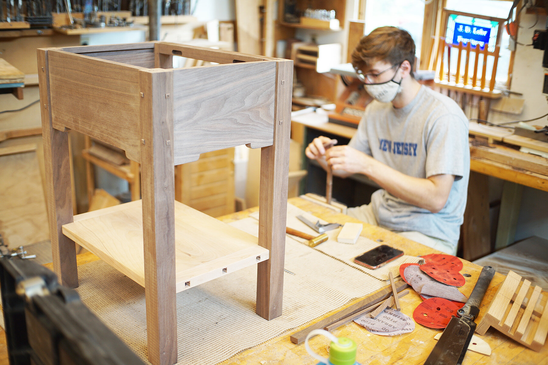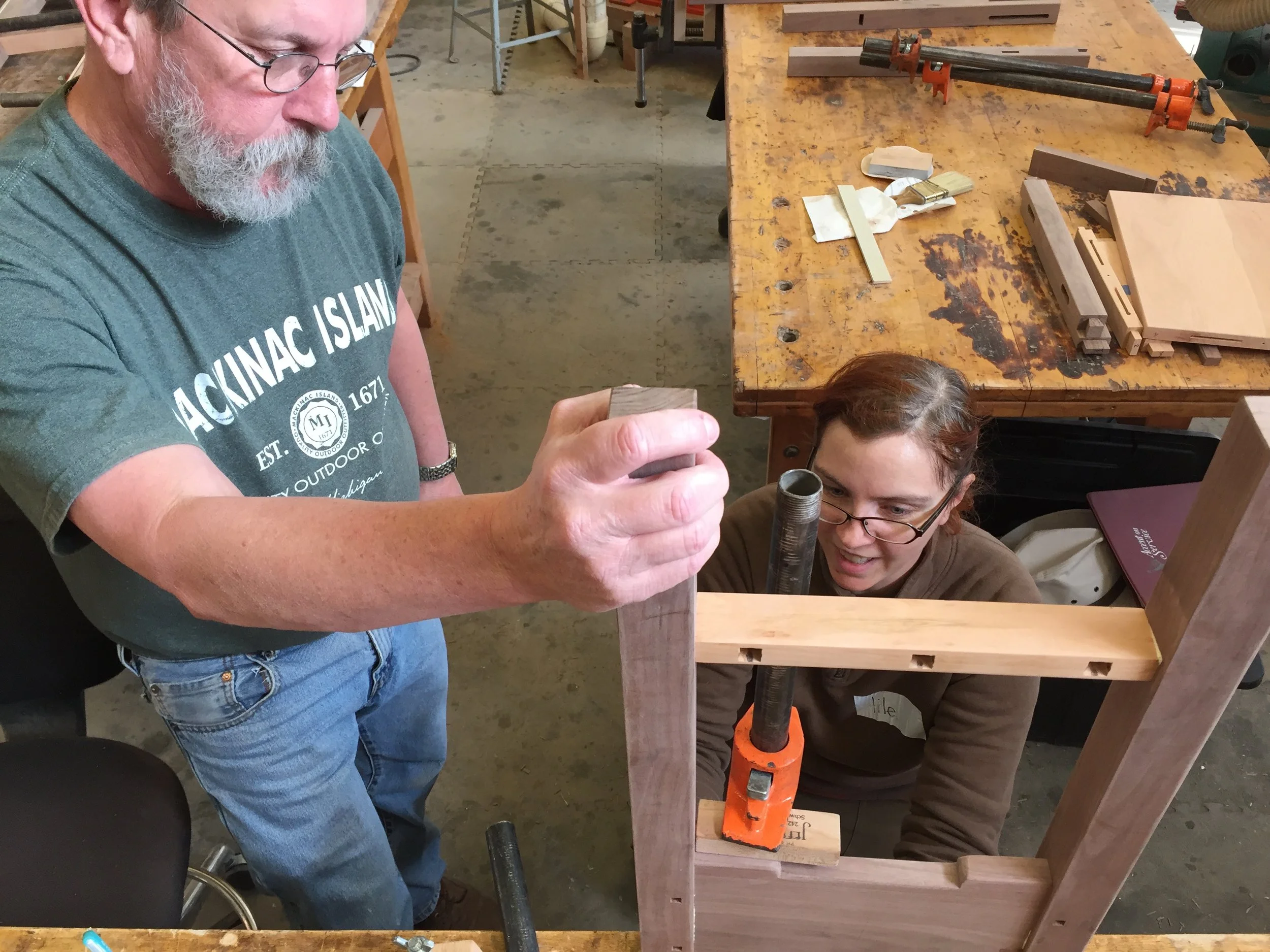 Offered only to our Practical Woodworking Course graduates, this advanced course delivers a whole new level of challenges and skill-building. The course teaches students how to perfect cut hand-cut and machine-cut dovetails, drawer construction, Greene & Greene style breadboard ends, floating shelf construction, cloud lift skirt board details, and more! Every student spends the week building a walnut and cherry accessory table to take home.
